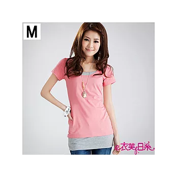 【衣芙日系】明星推薦假兩件長版上衣(粉M)